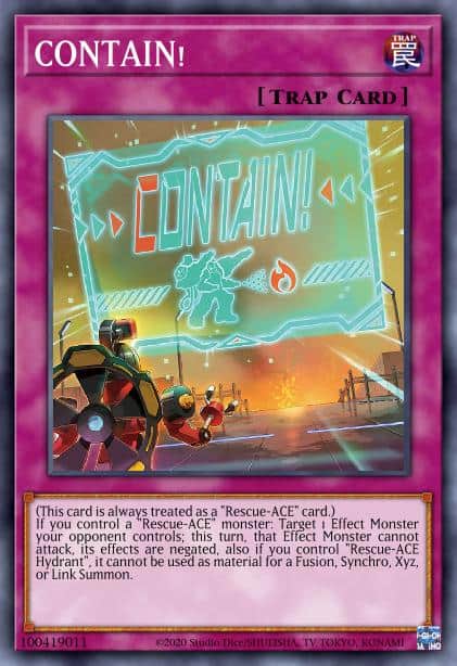 If you control a “Rescue-ACE” monster: Target 1 Effect Monster your opponent controls; this turn, that Effect Monster cannot attack, also its effects are negated. If you control “Rescue-ACE Hydrant” at resolution of this effect, that monster also cannot be used as material for a Fusion, Synchro, Xyz, or Link Summon this turn.
