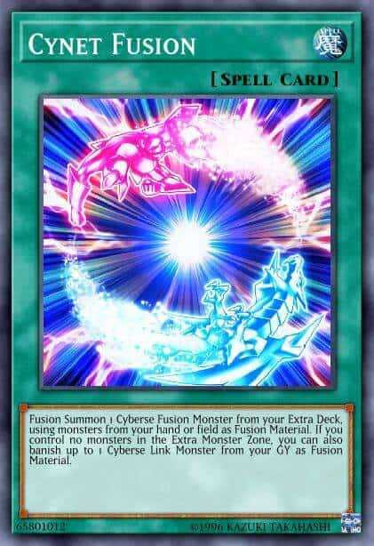 Fusion Summon 1 Cyberse Fusion Monster from your Extra Deck, using monsters from your hand or field as Fusion Material. If you control no monsters in the Extra Monster Zone, you can also banish up to 1 Cyberse Link Monster from your GY as Fusion Material.