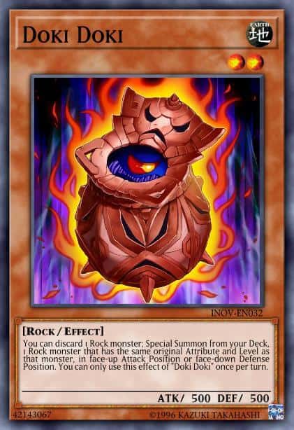 You can discard 1 Rock monster; Special Summon from your Deck, 1 Rock monster that has the same original Attribute and Level as that monster, in face-up Attack Position or face-down Defense Position. You can only use this effect of “Doki Doki” once per turn.