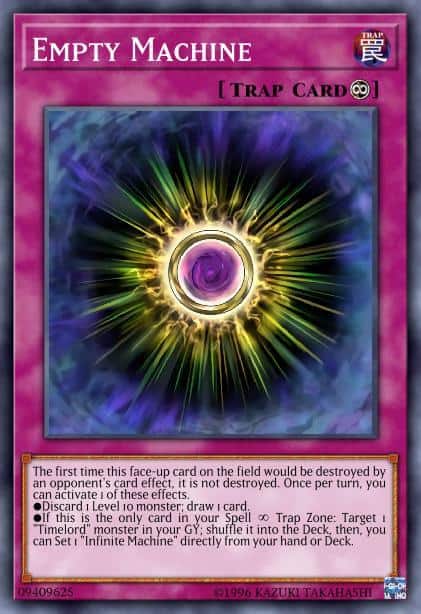 ● If this is the only card in your Spell & Trap Zone: Target 1 “Timelord” monster in your GY; shuffle it into the Deck, then, you can Set 1 “Infinite Machine” directly from your hand or Deck.