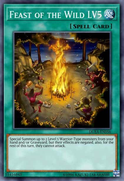 Special Summon up to 2 Level 5 Warrior-Type monsters from your hand and/or Graveyard, but their effects are negated, also, for the rest of this turn, they cannot attack.