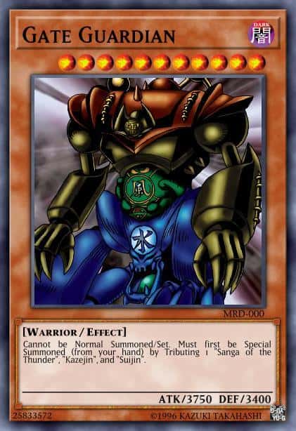 Cannot be Normal Summoned/Set. Must first be Special Summoned (from your hand) by Tributing 1 “Sanga of the Thunder”, “Kazejin”, and “Suijin”.