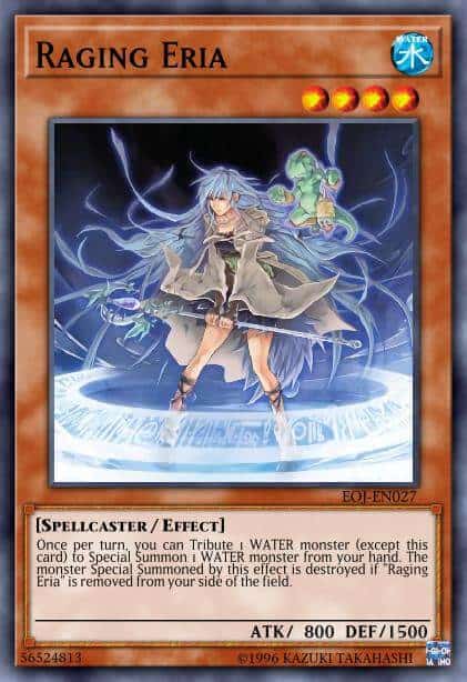 Once per turn, you can Tribute 1 WATER monster (except this card) to Special Summon 1 WATER monster from your hand. The monster Special Summoned by this effect is destroyed if “Raging Eria” is removed from your side of the field.