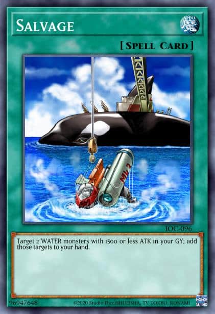 Target 2 WATER monsters with 1500 or less ATK in your Graveyard; add those targets to your hand.
