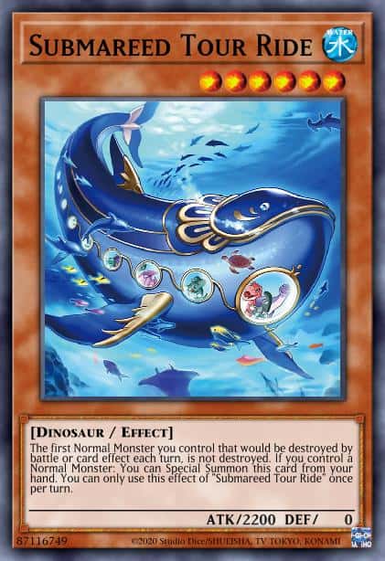 The first Normal Monster you control that would be destroyed by battle or card effect each turn, is not destroyed. If you control a Normal Monster: You can Special Summon this card from your hand. You can only use this effect of “Submareed Tour Ride” once per turn.
