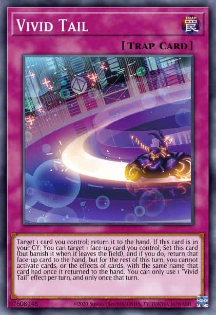 Target 1 card you control; return it to the hand. If this card is in your GY: You can target 1 face-up card you control; Set this card (but banish it when it leaves the field), and if you do, return that face-up card to the hand, but for the rest of this turn, you cannot activate cards, or the effects of cards, with the same name that card had once it returned to the hand. You can only use 1 “Vivid Tail” effect per turn, and only once that turn.