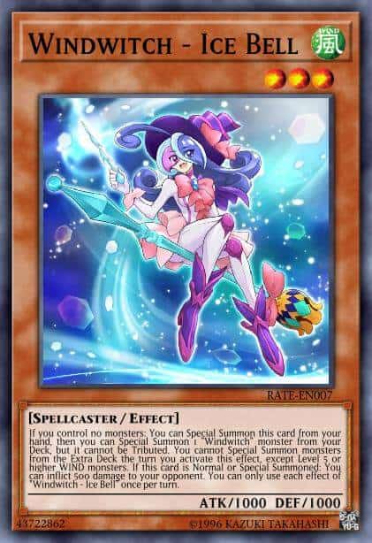 If you control no monsters: You can Special Summon this card from your hand, then you can Special Summon 1 “Windwitch” monster from your Deck, but it cannot be Tributed. You cannot Special Summon monsters from the Extra Deck the turn you activate this effect, except Level 5 or higher WIND monsters. If this card is Normal or Special Summoned: You can inflict 500 damage to your opponent. You can only use each effect of “Windwitch – Ice Bell” once per turn.